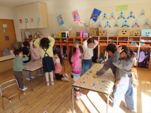 かるた取り大会の時の年長さんの様子です。白熱した戦いでした!みんな全集中して頑張りました☆