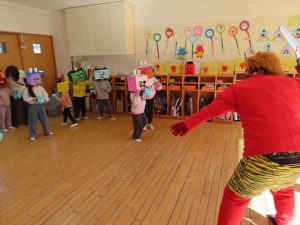 先週、節分の豆まきをしました。子どもたちは手作りのお面を被って「おには~そと!ふくは~うち!」と元気に豆まきをし、鬼を追い払いました。今年もたくさんの福が訪れますように☆